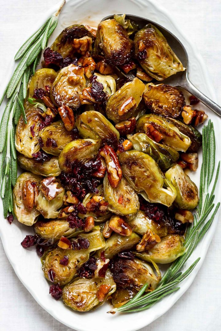 Roasted Brussels Sprouts and Sweet Potato with Balsamic Honey Glaze