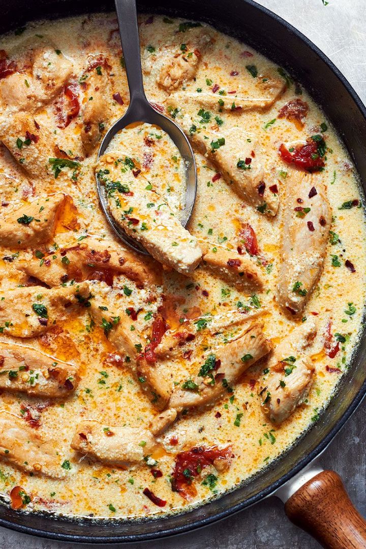 Skillet Creamy Chicken with Garlic Mozzarella Sun-Dried Tomato