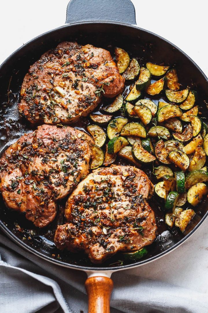 Garlic Butter Herb Pork Chops with Zucchini