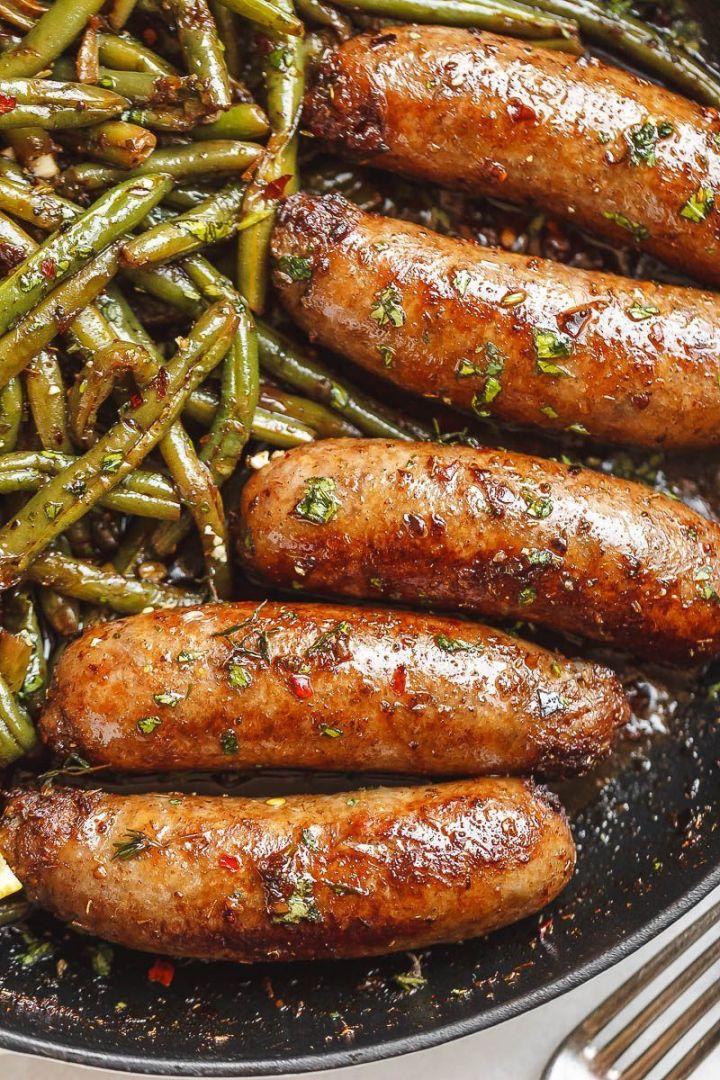 Garlic Butter Sausages with Lemon Green Beans