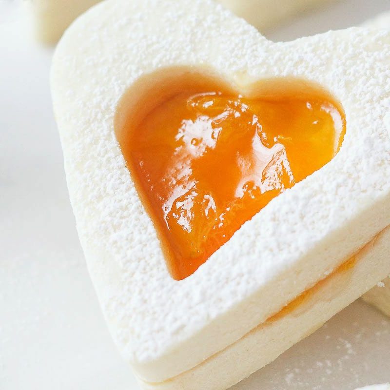 4. Spread apricot jam on the plain cookies and top with an hollowed cookie, then dust with powdered sugar. Enjoy!
