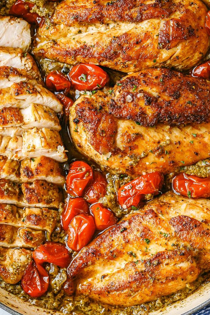 4. Line the bottom of the dish with crushed tomatoes, olive oil and chopped basil.