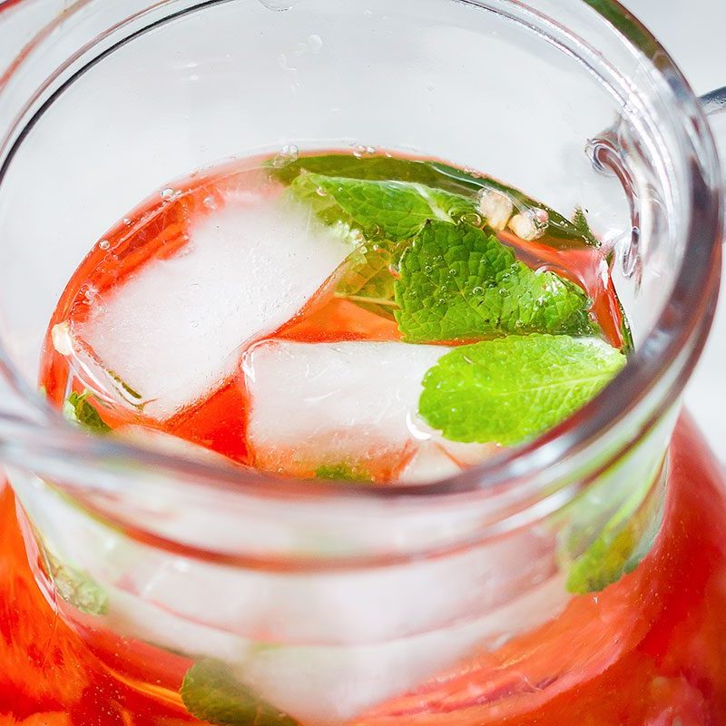 1. Combine all ingredients except sparkling water in a large pitcher and stir well. Refrigerate at least 3 hours (more if possible, to let the flavors meld).